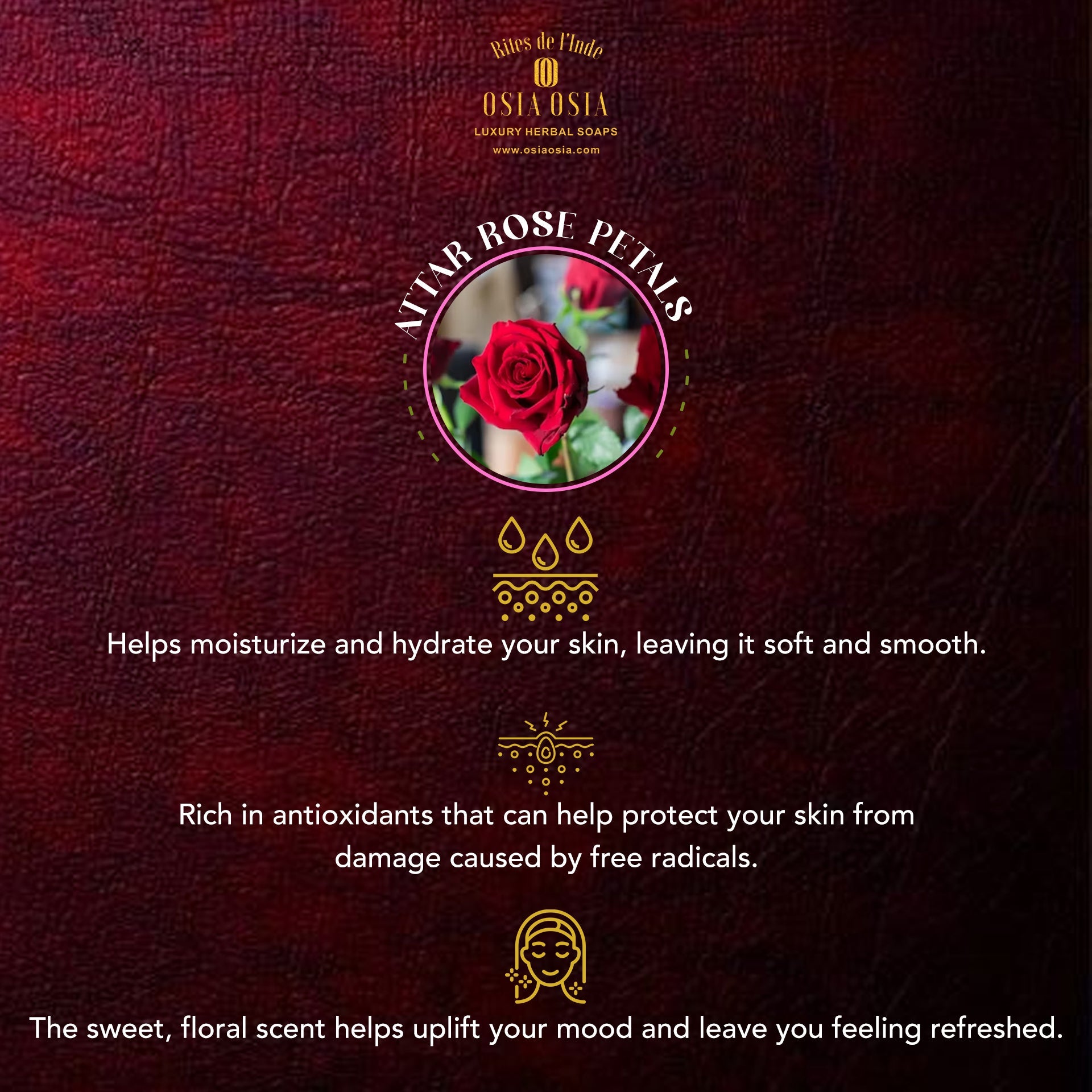 Each Soap Bar Contains Essential Oils from Attar Rose Petals ( Rosa Sinensis) 3%