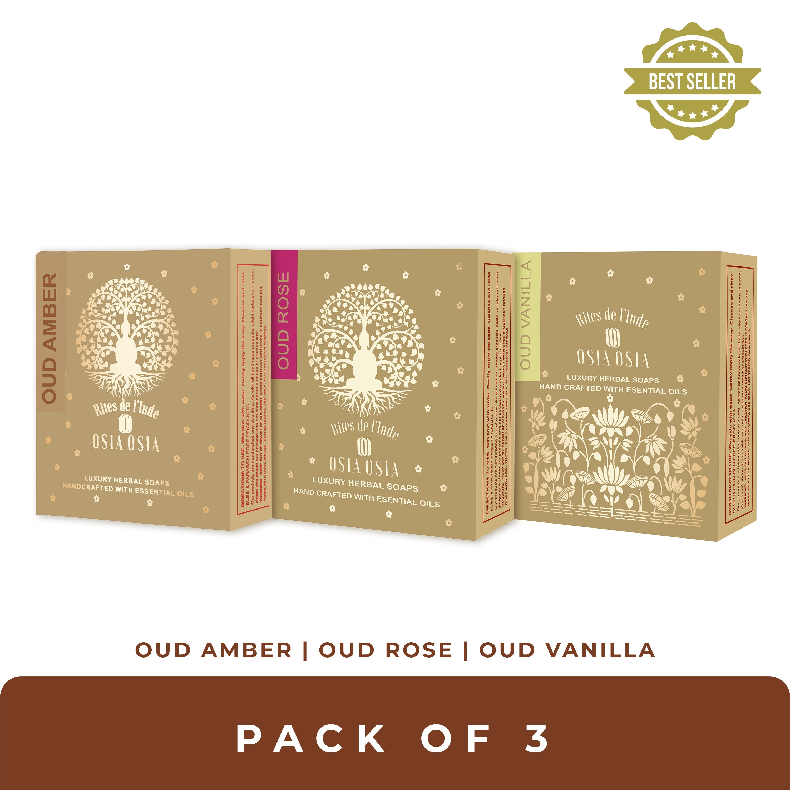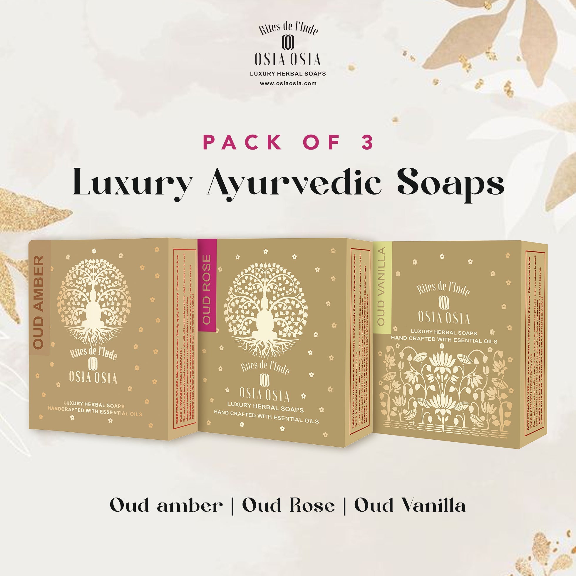 Oud Vanilla, Oud Amber & Oud Rose Pack of 3 Ayurvedic Soap