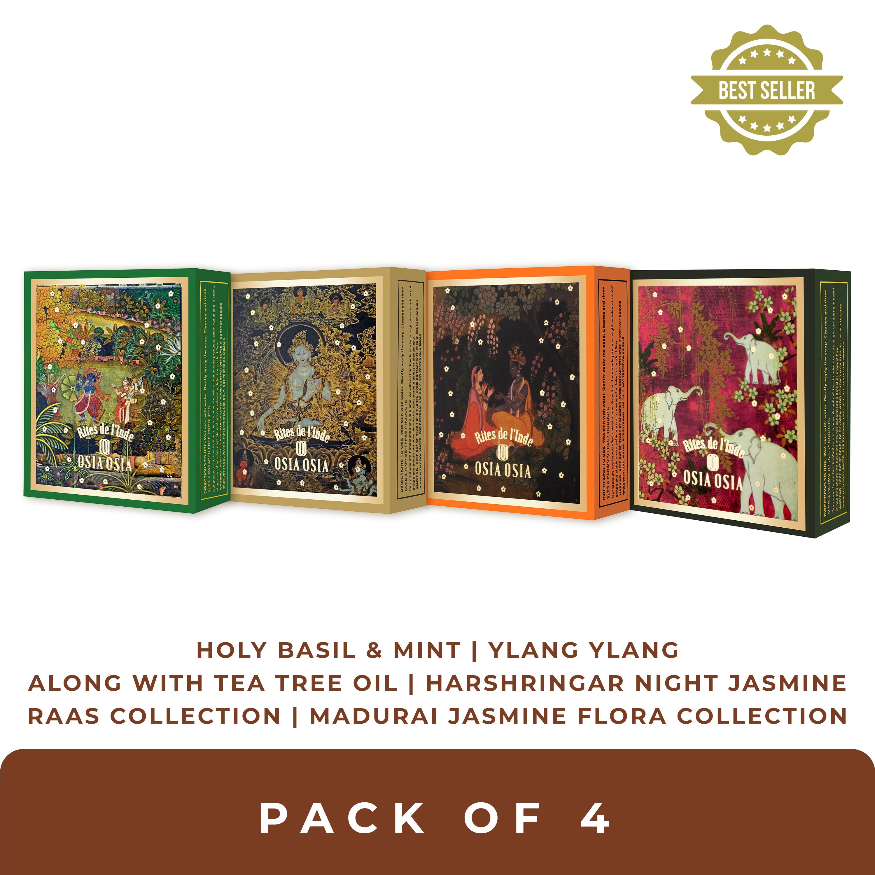 Holy Basil & Mint, Ylang Ylang with Tea Tree, Harshringar with Night Jasmine & Madurai Jasmine Pack of 4 Ayurvedic Soaps