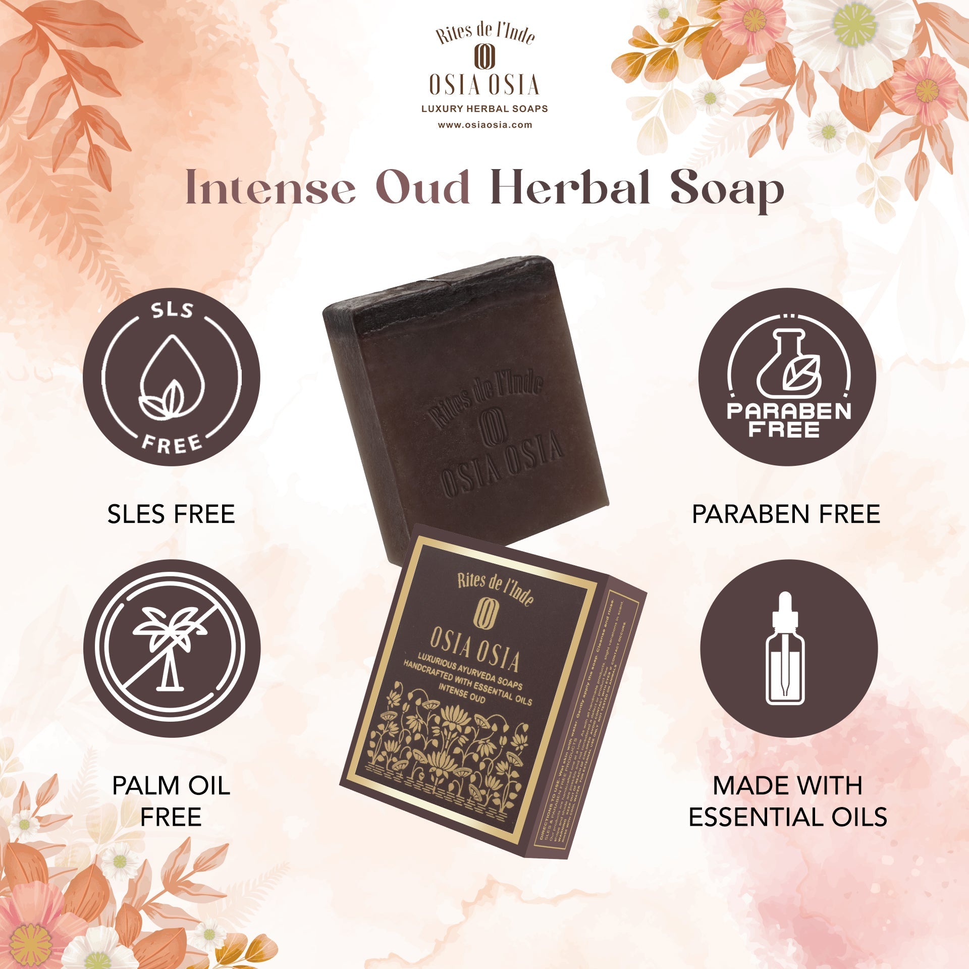 Osia Osia Intense Oud Herbal Soap which comes from the Aquilaria tree is known for its intoxicating and long lasting sweet scent. It has been used since ancient times as a means of reducing negative energies. Oud oil is widely used for meditation to enhance peace and tranquility. It also promotes sleep and alleviates stress.