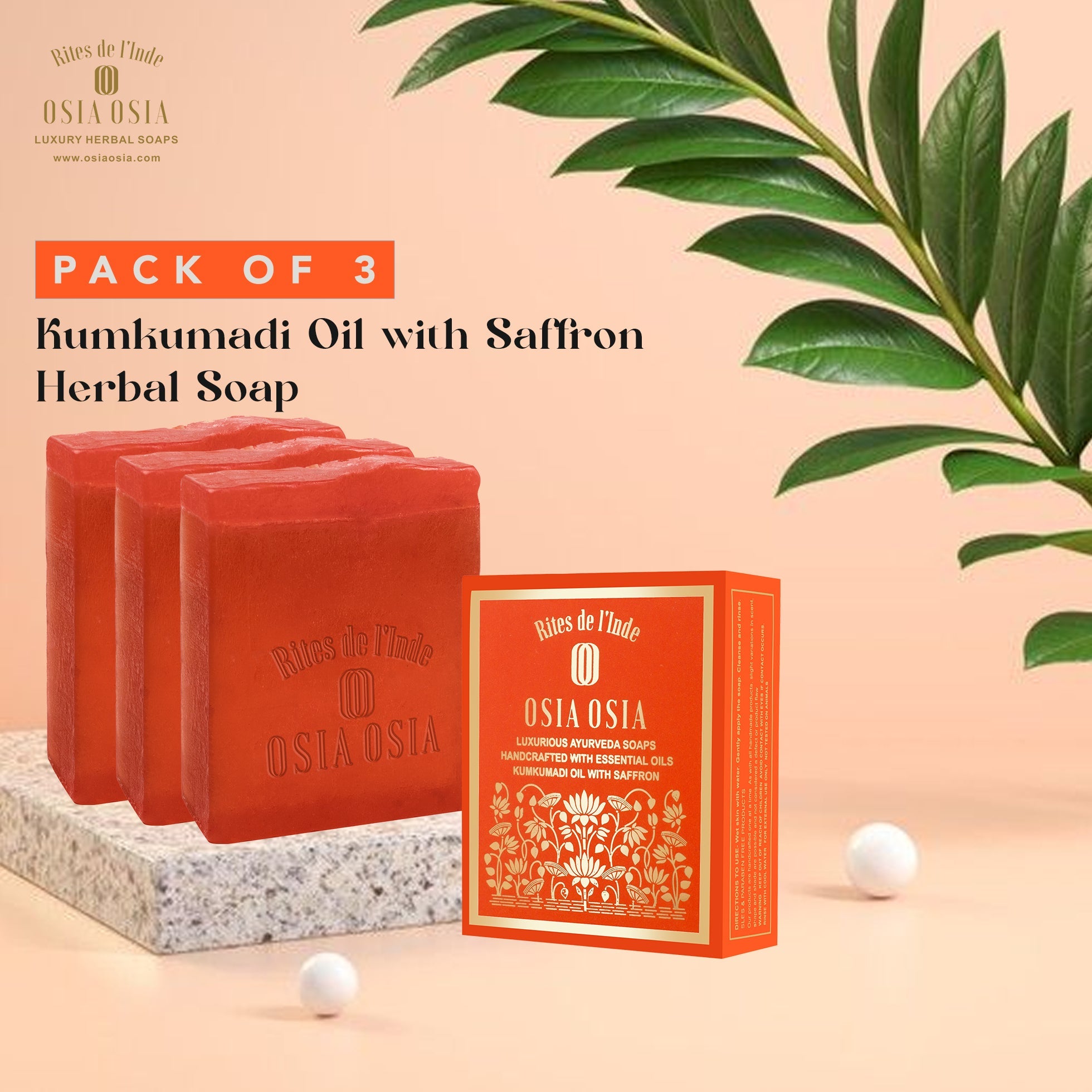 Osia Osia Kumkumadi Oil with Saffron Herbal Soap is a skin brightening and polishing soap, it illuminates complexion and evens skin tone, repairs pigmentation, dark spots and marks. It minimizes fine lines and signs of aging. It moisturizes and smoothens the skin promoting new cell growth.