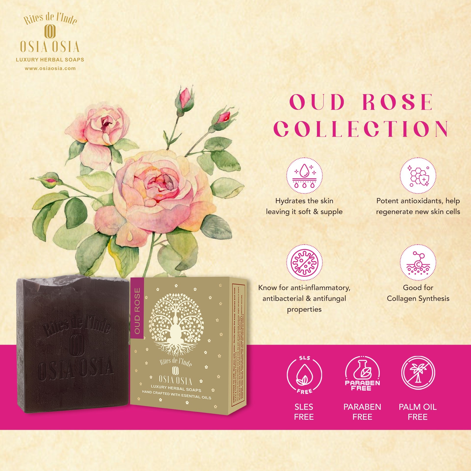 The pure essential oil of Oud – a precious and rare wood resin, is extracted by steam distillation for its excellent warming and soothing properties. Its exquisite fragrance also leaves the skin scented for hours. Oud is a peculiar fragrance with an intense and seductive aroma. Combining smoky and warm notes with soft rose essential oil, the soap is rounded with spice for a mysteriously sultry scent.