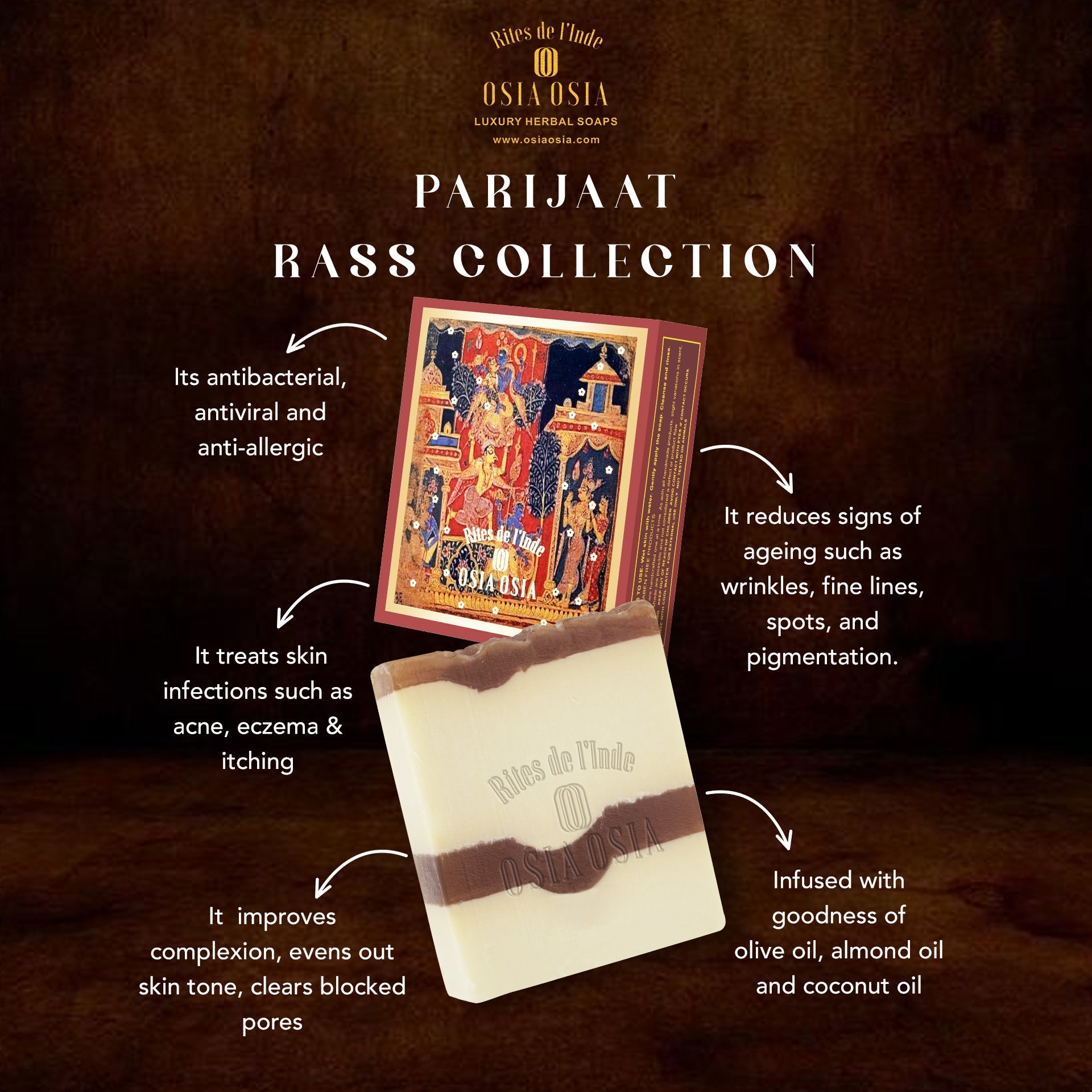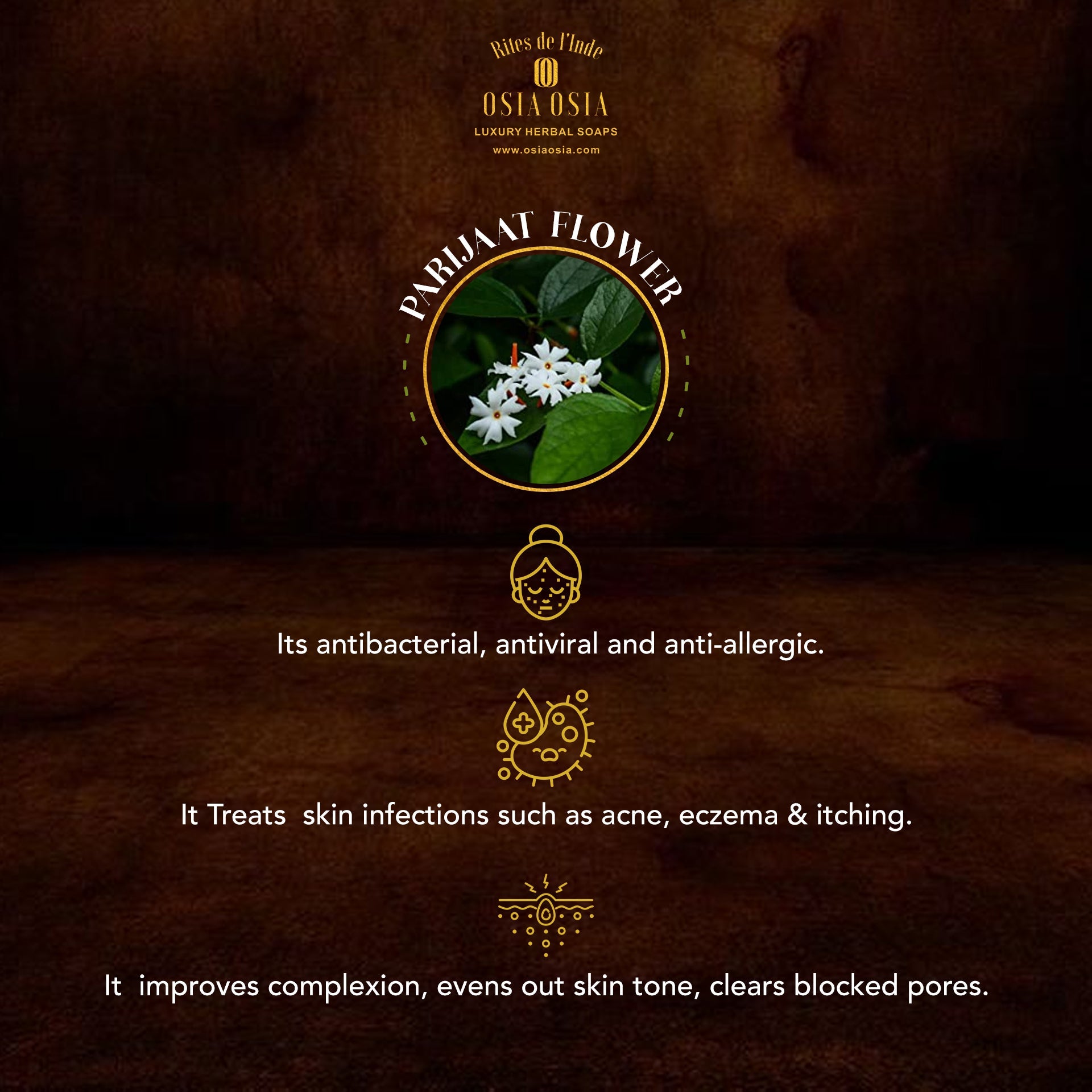 Each Soap Bar Contain Essential oils from parijat flower petals (Nyctanthes arbortristis) 3%