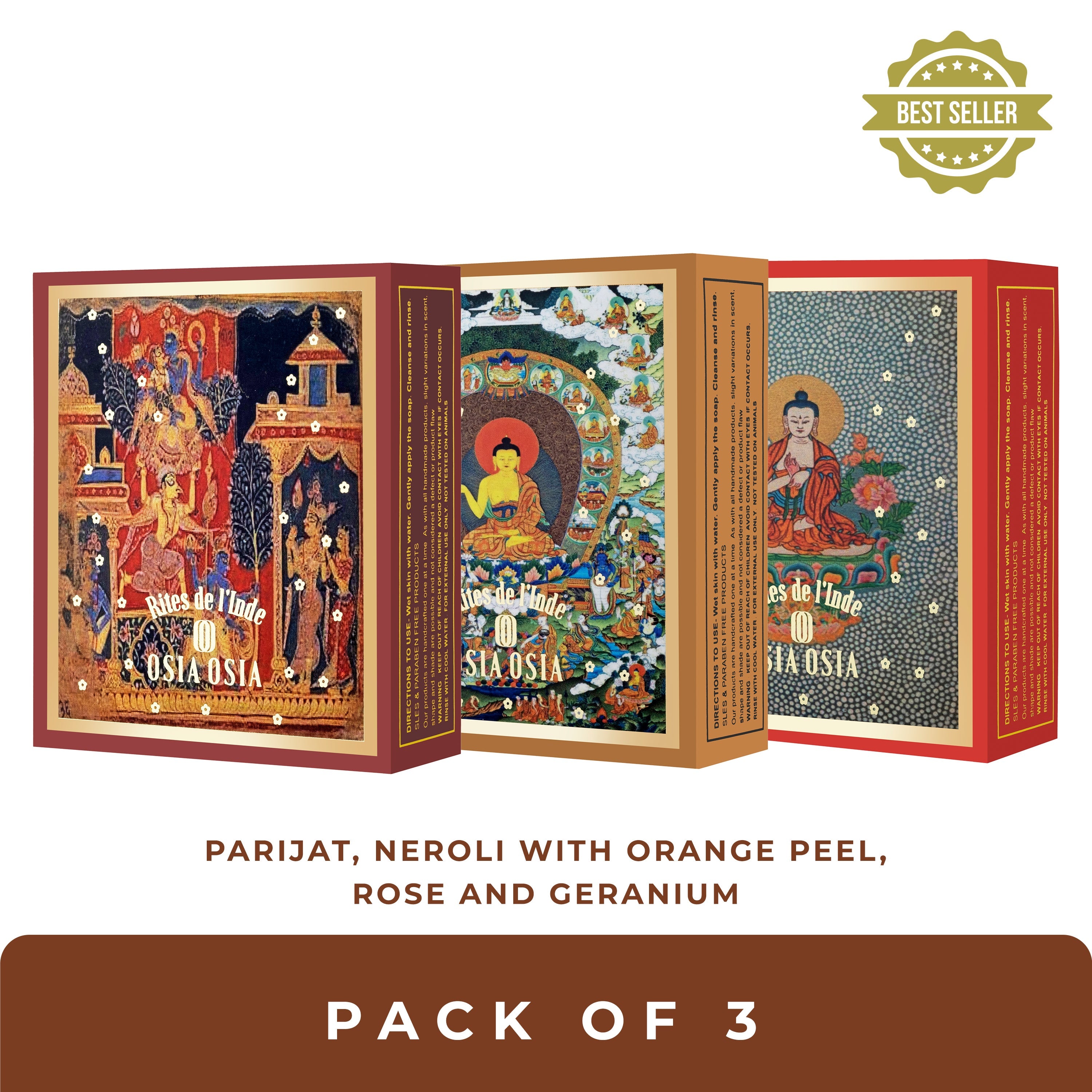 Parijat, Neroli With Orange Peel, Rose & Geranium Pack of 3 Ayurvedic Soap