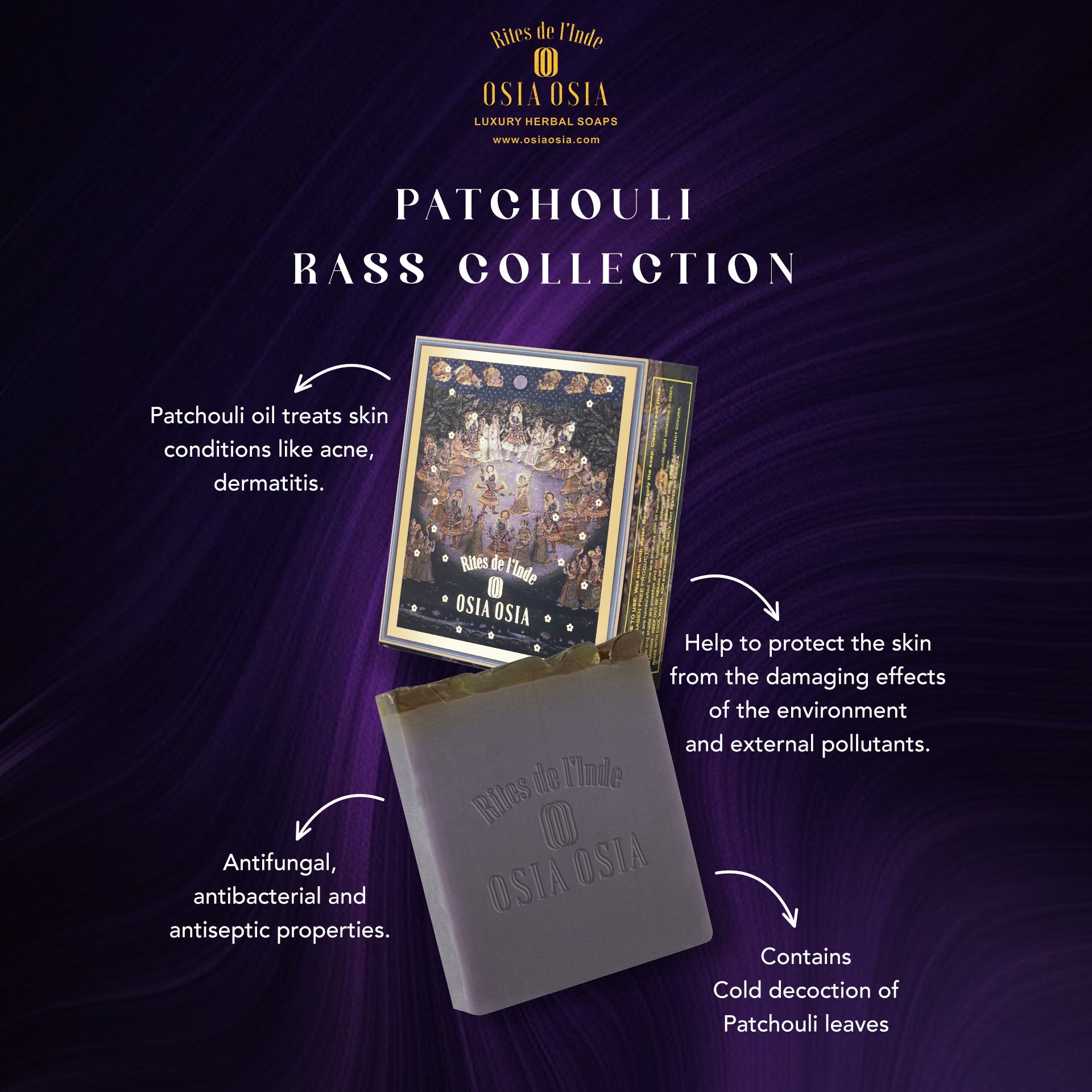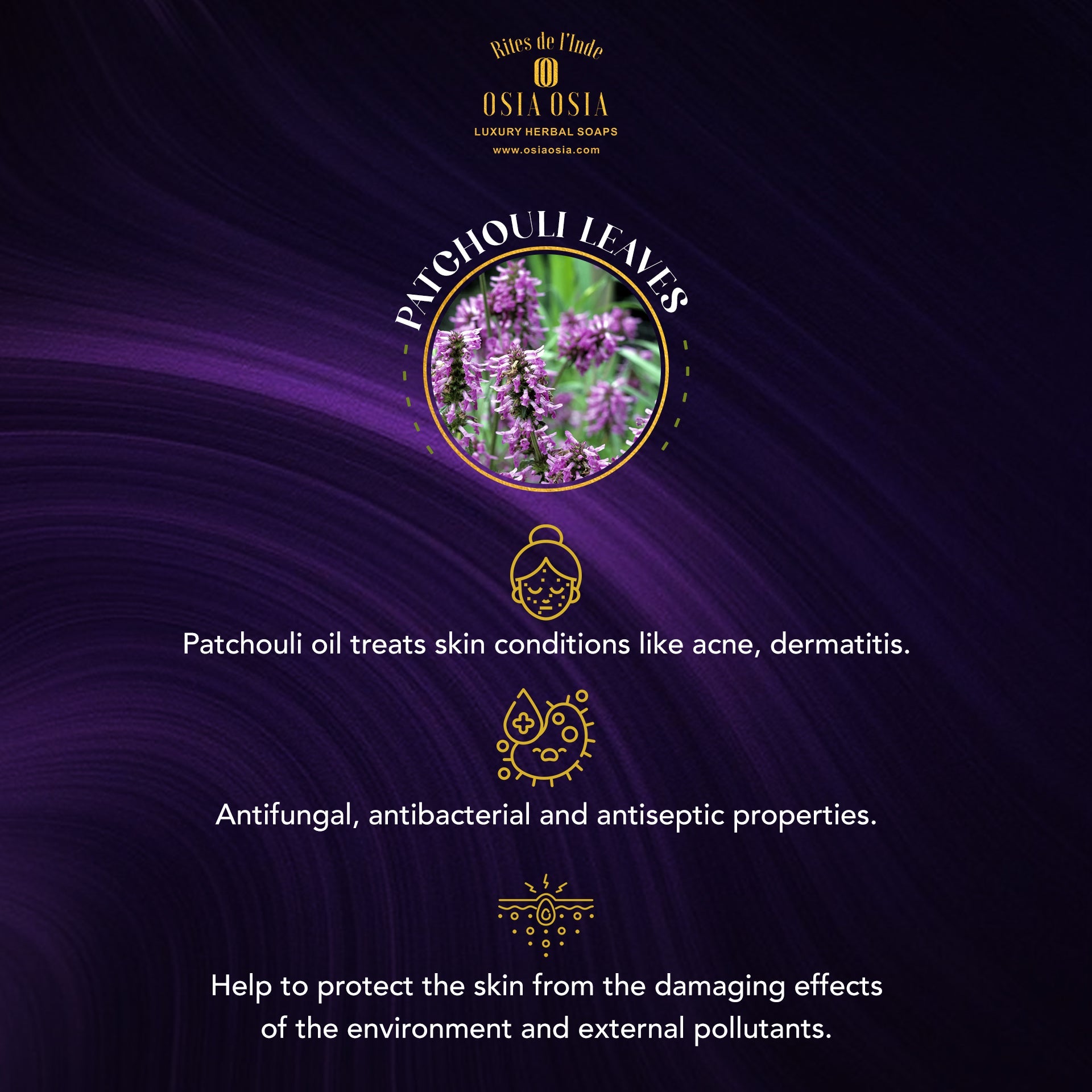 Each Soap Bar Contain Essential oils from flowersPatchouli (Pogostemoncablin) 3%)