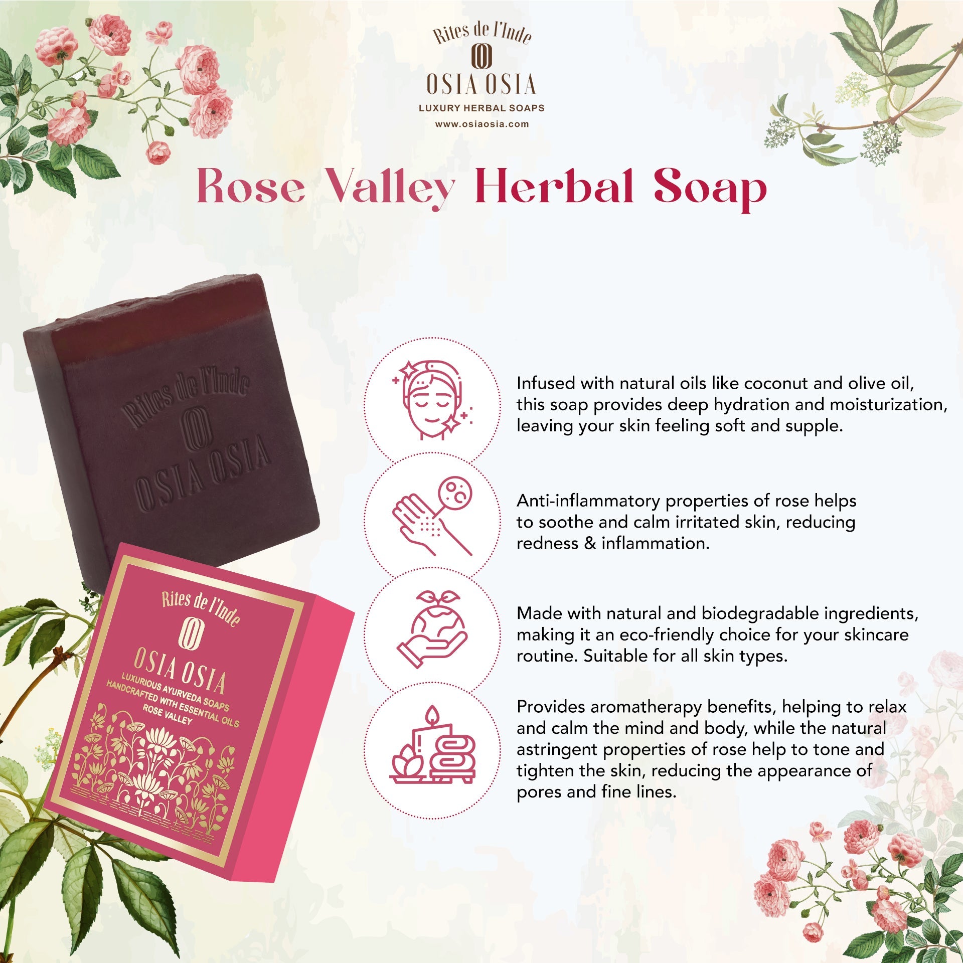 - Hydrating and Moisturizing: Our Rose Valley Herbal Soaps are enriched with natural ingredients that deeply hydrate and moisturize your skin, leaving it feeling soft, supple, and radiant.