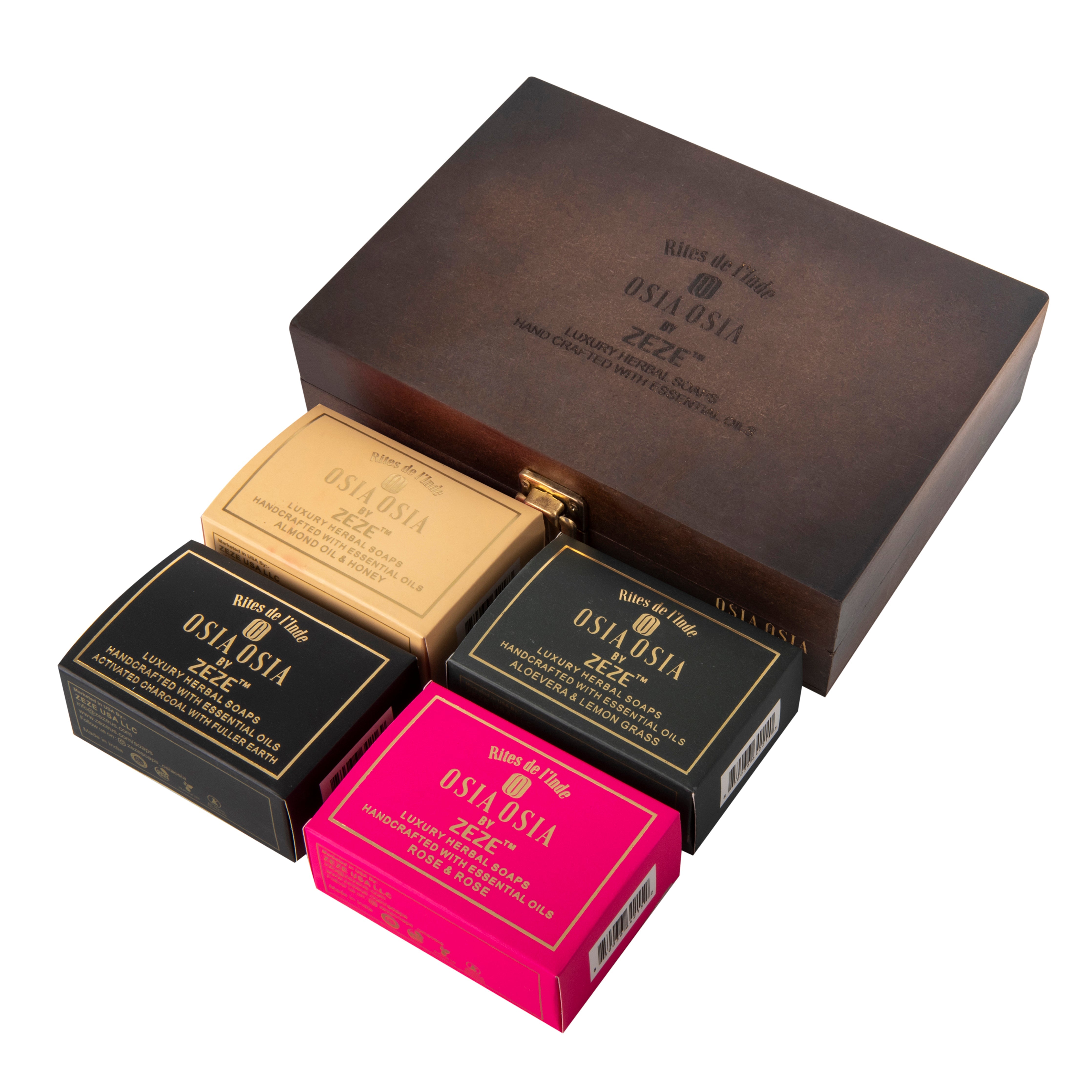 Wooden Pack of 4 Herbal Soaps